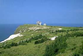 南西端に位置する、白色凝灰岩が広がった筆ん崎(ふでんざき)は、断崖絶壁のダイナミックな景観です。