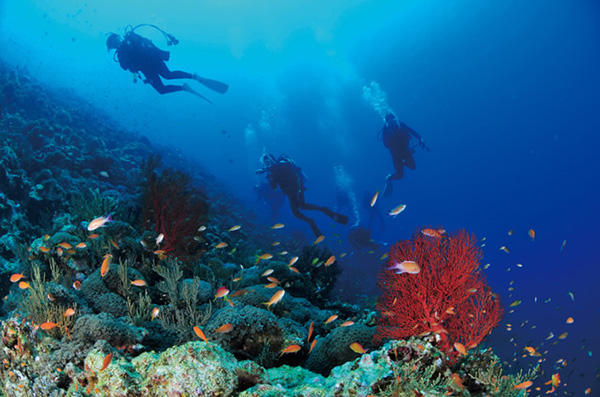 海底の白い砂が透けて見えるほど、透明度の誇る青い海であることから、「ケラマブルー」として世界的に知られており、国内外から多くのダイバーが訪れるダイビングスポットです。