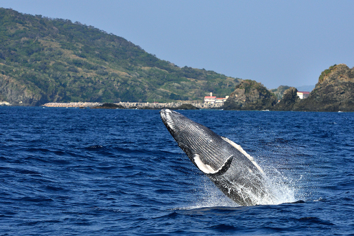 冬季の村海域には、ザトウクジラの群れが繁殖に訪れ、豪快なジャンプなど様々なパフォーマンスに圧倒されます。